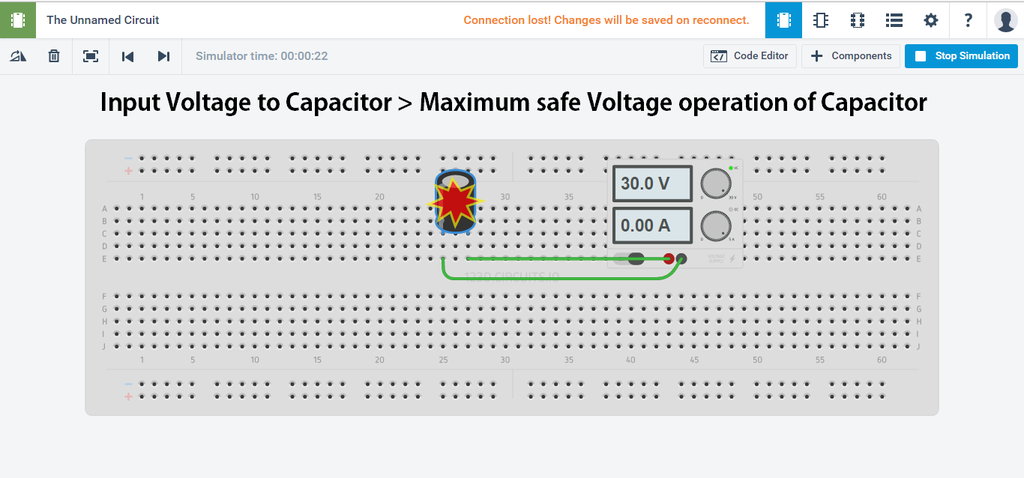 At ' Voltage input to the capacitor > maximum safe operating voltage of capacitor ' , the capacitor will explode.